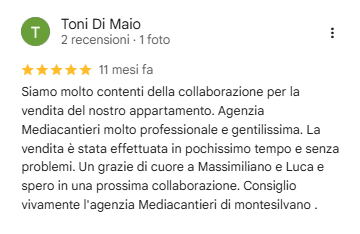 Le altre recensioni le trovi su google scrivendo mediacantieri agenzia immobiliare.